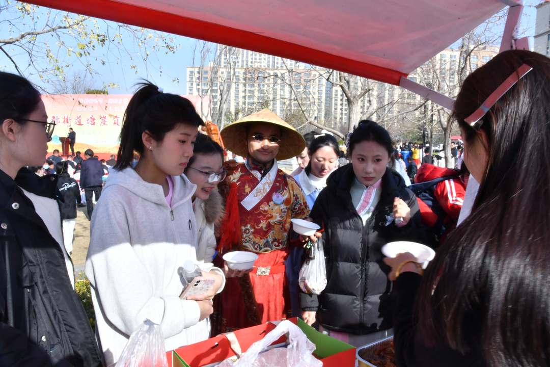 品鉴会不仅是一场味觉的盛宴,更是一场视觉与听觉的享受。台上,舞蹈《蒙山沂水情深深》以灵动舞姿演绎沂蒙山水之韵,歌曲《光亮》用悠扬旋律传递希望之光,魔术表演以奇幻手法惊艳全场,歌伴舞《奔跑吧临沂》则以激昂节奏点燃现场热情。与往届不同的是,本届品鉴会以“塘崖贡米”为主题创作的卡通代言人“米小塘”主持稻米知识问答与游戏互动,其萌趣形象与智慧问答深受现场市民群众喜爱。台下,年糕的软糯香甜、粽子的叶香米润、米酒的醇厚甘冽、米花糖的酥脆甜蜜、临沂炒鸡的鲜辣浓香等本地特色美食依次铺陈,与台上节目交相辉映,共同编织出一幅色香味俱佳的文化盛宴图卷,让嘉宾和市民游客在品味沂蒙美食文化的同时,全方位感受“塘崖贡米”的独特魅力与当地人民的热情好客。